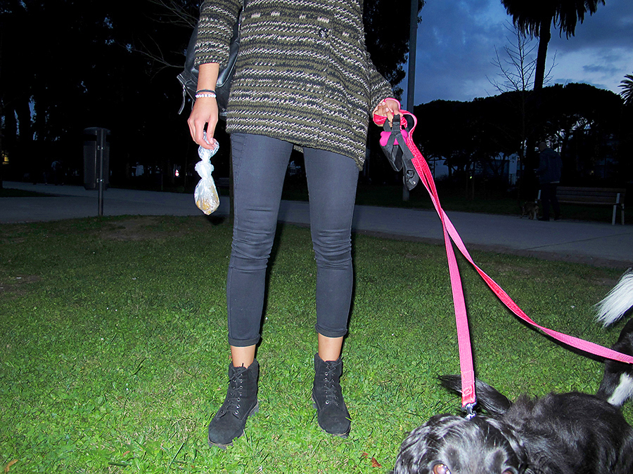 A natural follow on from the DDSBs projects looking at the nature of dog walking and the things we do for our animals. This work becomes a brief collaboration between dog walker and myself, and reflects on the international ubiquity of dog walkers and those knotted bags we all carry as part of the process.