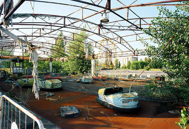 Images produced within the Chernobyl Exclusion Zone, a 30 kilometer radius no-entry area that was evacuated after the nuclear meltdown at the Chernobyl Power Plant in 1986. The area contained one major city, Pripyat, over seventy villages and scores of farms. The people living in these locations were given twenty four hours to gather their possessions and were then moved to locations around the Ukraine, in most cases never to return.